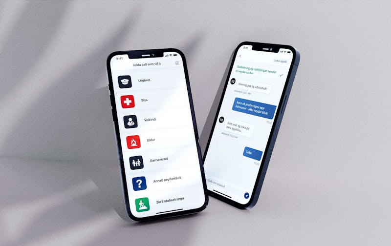 The app is based on a design for hearing impaired persons who use sign language, in Icelandic called "döff people", but has shown itself to be useful for anyone who might have difficulty calling for help or in describing the situation in a call.